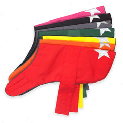 These dog coats have a waterproof outer layer with a super-soft polar fleece lining and a reflective star on the back. They fastens with velcro, making it easy to put on and allowing for a flexible fit. Available in 7 bright and fun colours.